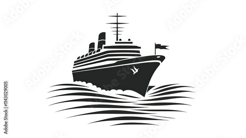 Obraz premium A stylized black and white illustration of a cruise ship sailing through waves.