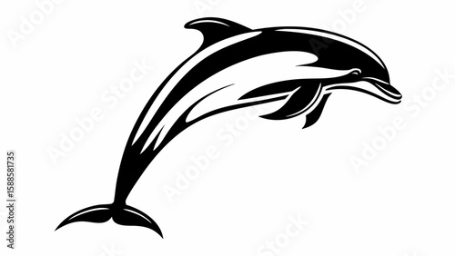 © Ahmed, Naklejka premium A stylized black and white illustration of a dolphin leaping out of the water gracefully and dynamically