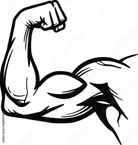 © ISMAIL, Obraz premium A stylized, black and white illustration of a muscular arm flexing.eps