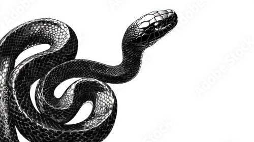 © TYNQ, Obraz premium A stylized black and white illustration of a snake coiling elegantly.