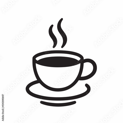 © SyedaNezun, Fototapeta premium A stylized black and white vector icon of a coffee cup with steam rising from it, resting on a saucer.
