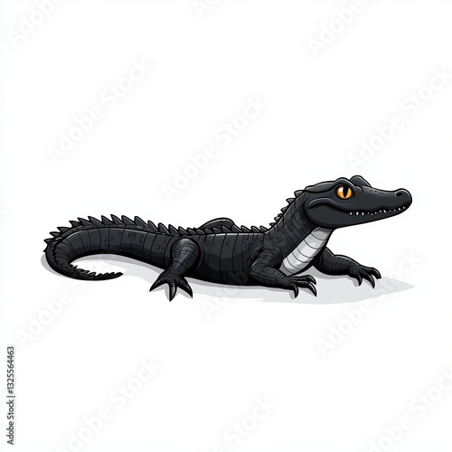 © Sheharyar, Obraz premium A stylized black cartoon crocodile with an expressive face and vivid eyes.