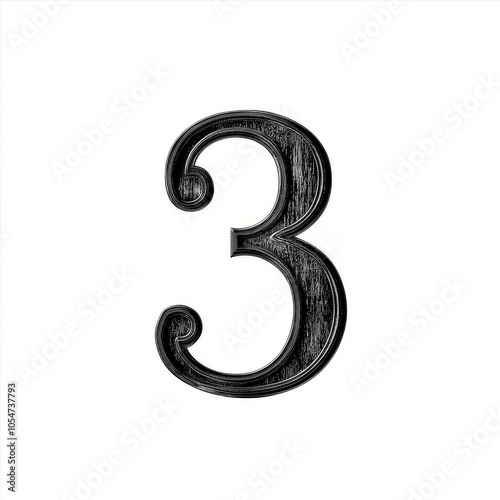 © MetaKibo, Naklejka premium A stylized black number three on a white background.