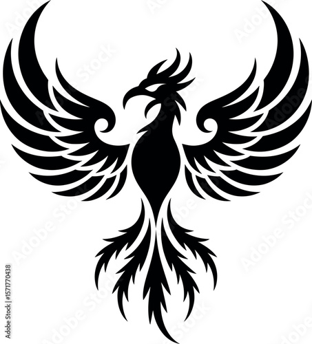 © Saqlain, Fototapeta premium A stylized black phoenix with wings spread wide on a white background in a tattoo design style