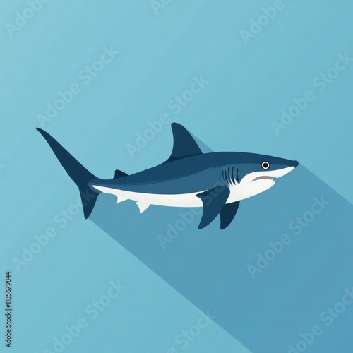 © RESTY, Obraz premium A stylized blue shark swims in the ocean