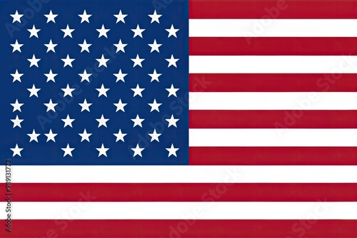 Naklejka premium A stylized, bold, and colorful American flag illustration, featuring 13 horizontal stripes and 50 white stars on a blue canton, set against a white background.