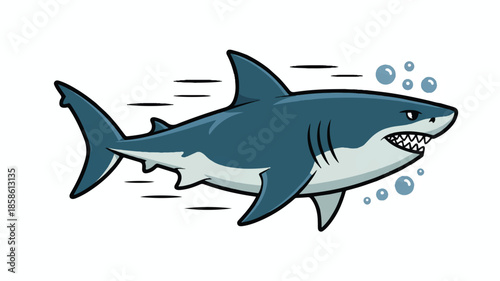 Fototapeta premium A stylized cartoon illustration of a great white shark swimming underwater.