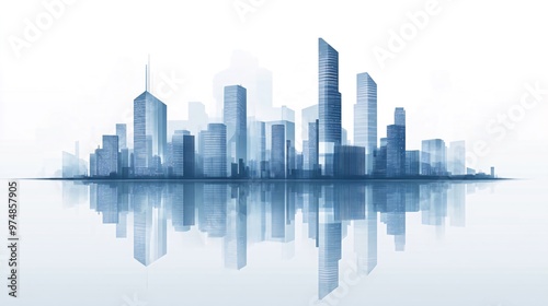 Fototapeta premium A stylized cityscape silhouette with a reflection on a white background.