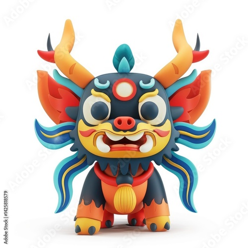 Fototapeta premium A stylized, colorful, cartoon dragon figurine.
