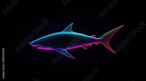 © Boinah, Fototapeta premium A stylized, colorful representation of a shark against a dark background.