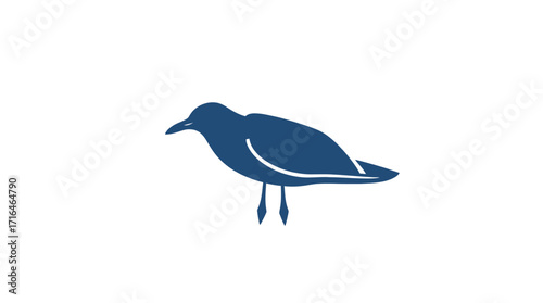 Fototapeta premium A stylized, dark blue silhouette of a seagull standing against a plain white background.