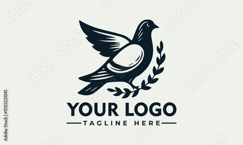 Obraz premium A stylized dove logo design, wings outstretched, perched on an olive branch,...