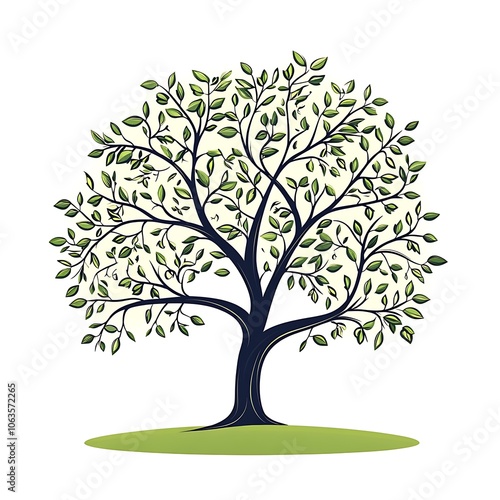 © Indri, Obraz premium A stylized drawing of a tree with green leaves and a brown trunk on a white background.