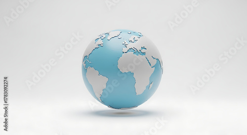 © MdRahat, Fototapeta premium A stylized globe with blue oceans and white continents on a white background in a studio shot