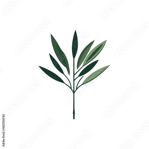 Fototapeta premium A stylized green plant branch with elongated leaves, set against a clean,...
