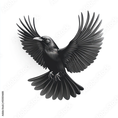 Obraz premium A stylized illustration of a black crow in flight against a white background.