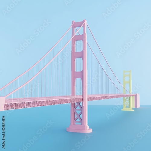 Fototapeta premium A stylized illustration of a bridge with pastel colors against a blue background.