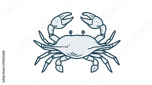 © Melll, Fototapeta premium A stylized illustration of a crab, viewed from above, depicted in a monochromatic blue-grey palette with dark-blue outlines, showcasing its detailed claws and legs against a white background