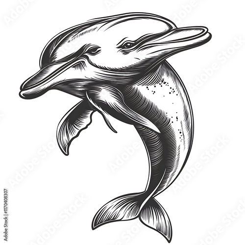 © Indri, Obraz premium A stylized illustration of a dolphin leaping gracefully.