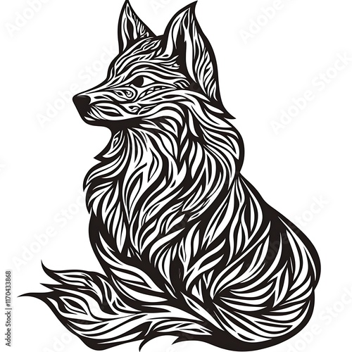 Fototapeta premium A stylized illustration of a fox, featuring intricate leaf patterns.
