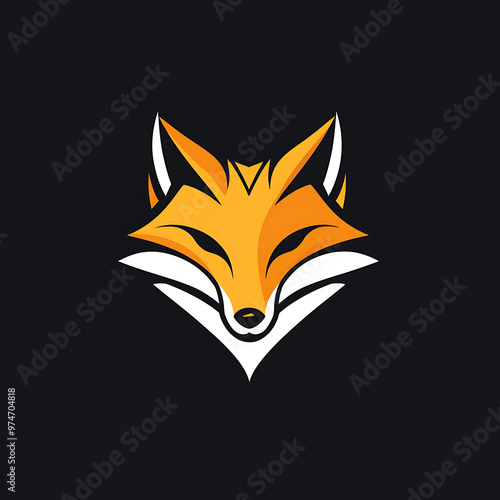 Obraz premium A stylized illustration of a fox's head in orange and white on a black...