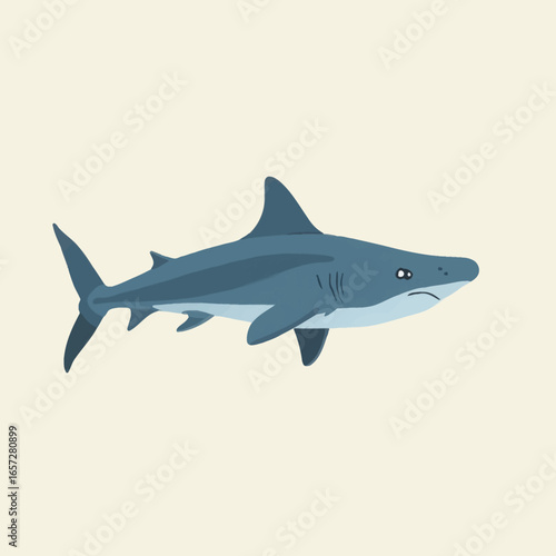 Naklejka premium A stylized illustration of a shark, depicted in a flat, minimalist design against a neutral background.