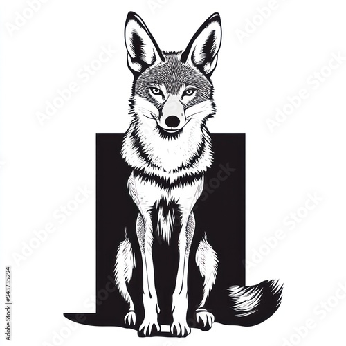 Naklejka premium A stylized illustration of a sitting fox with a bold black background.