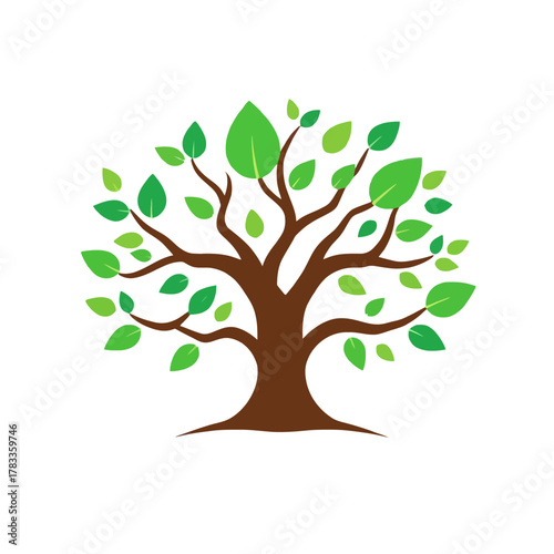 Obraz premium A stylized illustration of a tree with green leaves and brown branches.