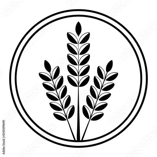 © Diclonius, Fototapeta premium A stylized illustration of wheat inside a circle. The image showcases a simple yet elegant design, emphasizing the wheat stalks' form