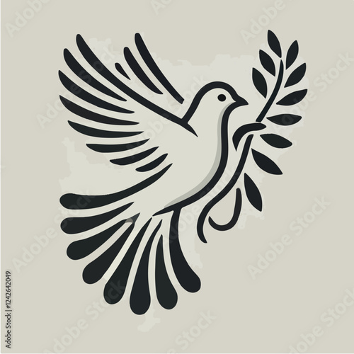 Fototapeta premium A stylized line drawing of a dove in flight, carrying an olive branch.