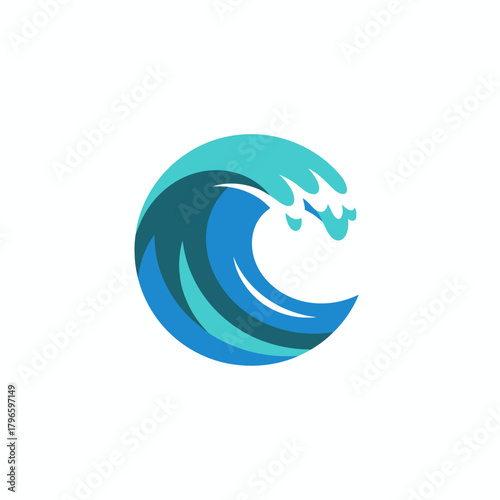 © Imsuniyah, Obraz premium A stylized ocean wave with a curved shape, depicted with multiple shades of blue and white
