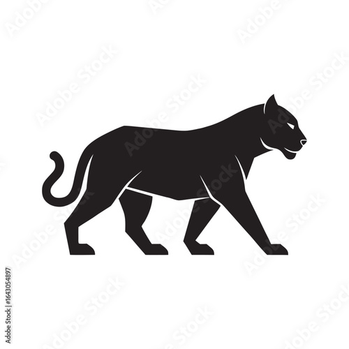 © MD ARIFUL, Obraz premium A stylized orange silhouette of a powerful panther walking confidently on a white background