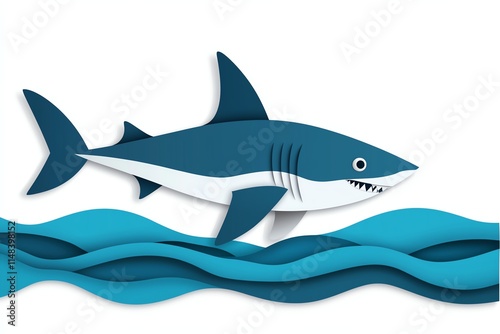 Fototapeta premium A stylized shark swims above wavy blue waters, showcasing a playful design...
