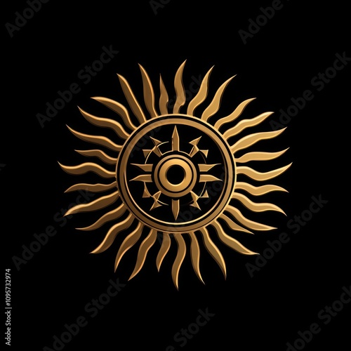 Fototapeta premium A stylized sun emblem featuring radiating rays and a central circle.