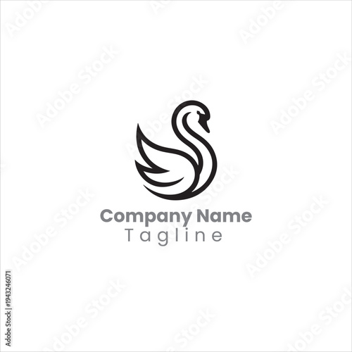 © MDMizanur, Obraz premium a stylized swan logo featuring minimalist black lines for a sleek and modern aesthetic.