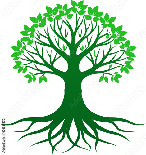© Alomgir, Fototapeta premium A stylized tree icon with roots and branches forming a balanced shape.