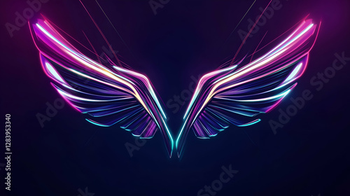 © Hashim, Fototapeta premium A stylized wing logo with a futuristic, neon-lit design and a dynamic, swoosh shape