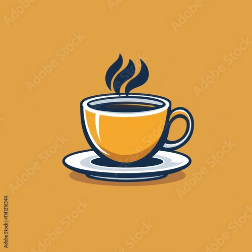 Obraz premium A stylized yellow coffee cup with steam on a plate, set against a warm...