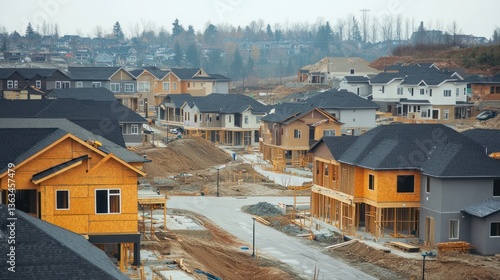 © Haidar, Obraz premium A suburban neighborhood being built, rows of unfinished houses --ar 16:9 --v 6.1 Job ID: ecdc4bf4-4ef4-43f9-b918-0967c3ad8afc