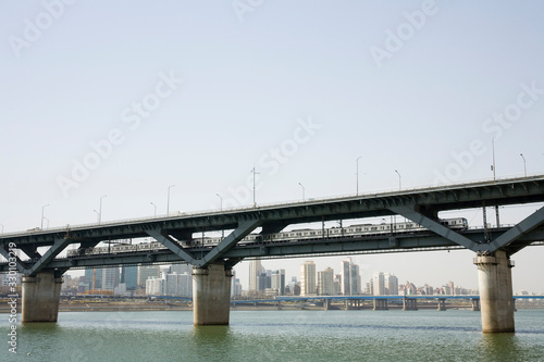 © photo_HYANG, Fototapeta premium A subway passing over the Han River in Seoul, Korea.