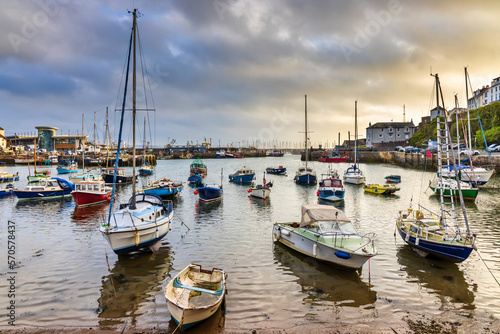 Fototapeta premium A summer sunrise at the picturesque Brixham harbour on the south coast of Devon.