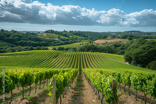 Fototapeta premium A summer vineyard field at sunset