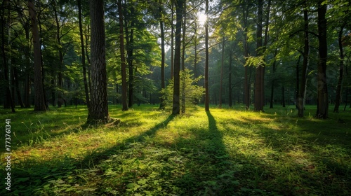 Fototapeta premium A sun-dappled glade in the heart of the forest AI generated illustration
