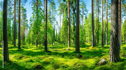© sosis, Obraz premium A sun-drenched forest floor, vibrant with life.