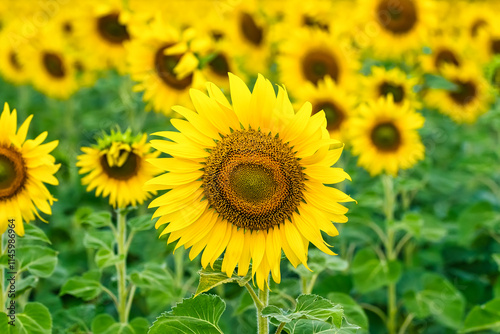 Fototapeta premium A Sunflower Field Captured in Perfect Detail, Highlighting the Brightness and...