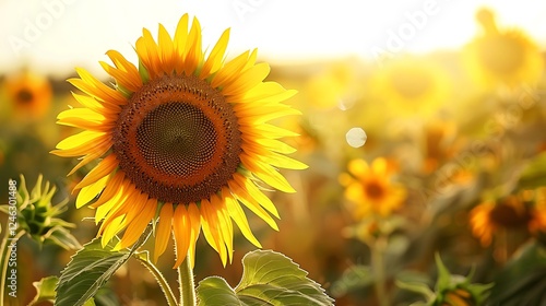 © Defaulter-art work, Obraz premium A sunflower field under a bright sky, symbolizing happiness and growth in life.