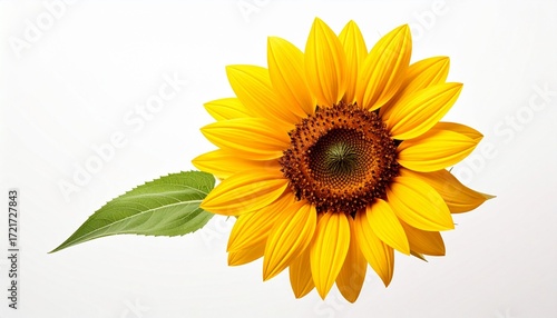 © ADNAN STOCKS, Fototapeta premium A sunflower plant with large yellow blossom realistic organic texture white background with clean lighting