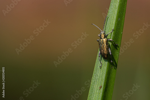 Fototapeta premium a sunlit click beetle on a blade of grass
