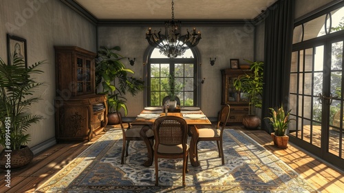 Fototapeta premium A Sunlit Dining Room with Traditional Furnishings