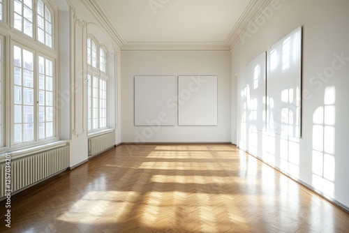Fototapeta premium A Sunlit, Empty, Classic European Gallery Space, Radiating Tranquility and Potential.